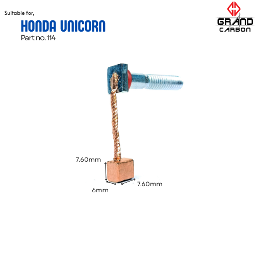 Carbon Brush Suit For Honda Unicorn the powerful and smooth starting performance it deserves with this Self Starter Carbon Brush. Specially designed for the Honda Unicorn, this replacement brush ensures optimal contact, consistent conductivity, and efficient current flow to the starter motor. ensuring they make proper contact with the commutator or rotor inside the starter motor.