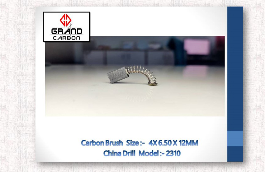 High Quality, Long Lasting, Spark Free & Original Grade Power Tools Carbon Brush is Suitable For China Drill 2310, This Carbon Brush Size is :- 12 x 6.50 x 4 M.M., And This Carbon Brush is Used For China Drill,